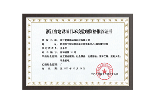 Obtained Zhejiang construction project environmental supervision qualification recommendation Certificate (Grade A)